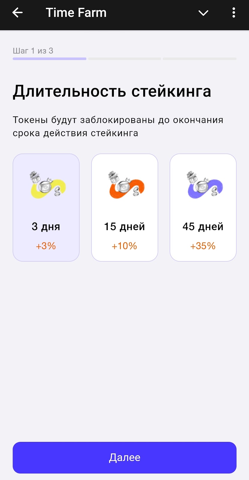 Разумеется, пока длится стейкинг, монетами пользоваться нельзя, но они будут отображаться в общей статистике дохода пользователя кликера Time Farm.