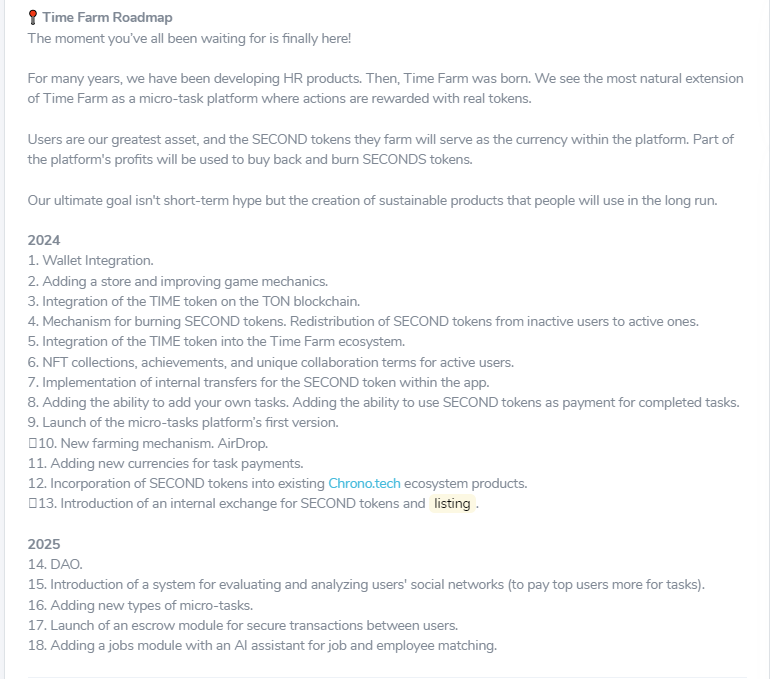 О том, когда листинг Time Farm состоится, разработчики в канале не упоминают. Есть информация, что запуск торговли ожидается к концу 2024 года, деталей нет.