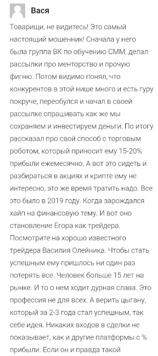 Трейдер Егор Ганжелла: реальные отзывы о мошеннике, разбор деятельности
