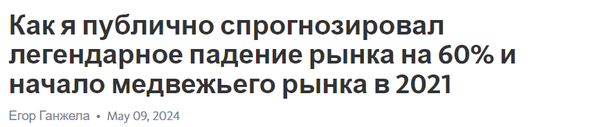 Также у автора выходя статьи на TradingView и Teletype. Вот пример одной из статей Егора на TradingView. Трейдер заявляет, что якобы спрогнозировал падение рынка на 60% в 2021 году. Однако статьи написана и опубликована уже после случившегося события. Вполне возможно, что автор взял готовую аналитику событий того года и переписал ее своими словами, чтобы выдать за личный прогноз.