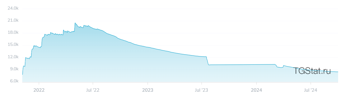 Динамика подписчиков на канале довольно странная. Изначально люди активно подписывались на сообщество, на пике автора читало 19 тыс. человек, однако сейчас количество подписчиков в два раза меньше. Такое неестественное поведение говорит о накрутке.