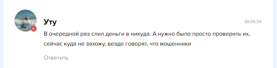 Отзывы о Егоре Ганжеле найти довольно сложно – в телеграмм-канале комментарии закрыты, а на сторонних площадках о трейдере почти никто не пишет. Однако несколько отзывов найти все же можно. Например, здесь пользователь жалуется, что снова потерял все деньги: