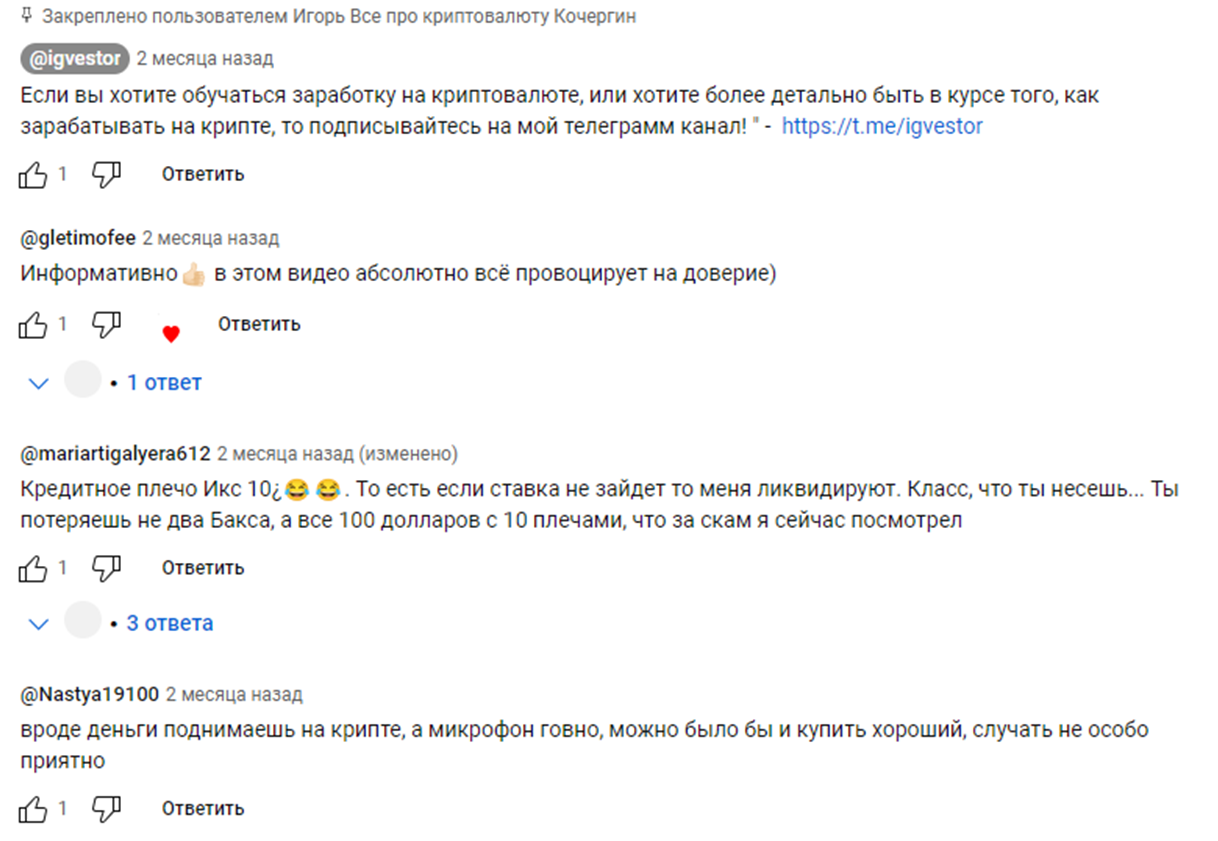 На Ютубе комментарии под видео не самые лучшие, пользователи довольно скептически относятся к контенту трейдера и подвергают критике его стратегии.