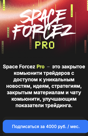 Публичная деятельность трейдера SpaceForcez направлена на то, чтобы реализовать среди своей аудитории платные курсы и рыночную аналитику.