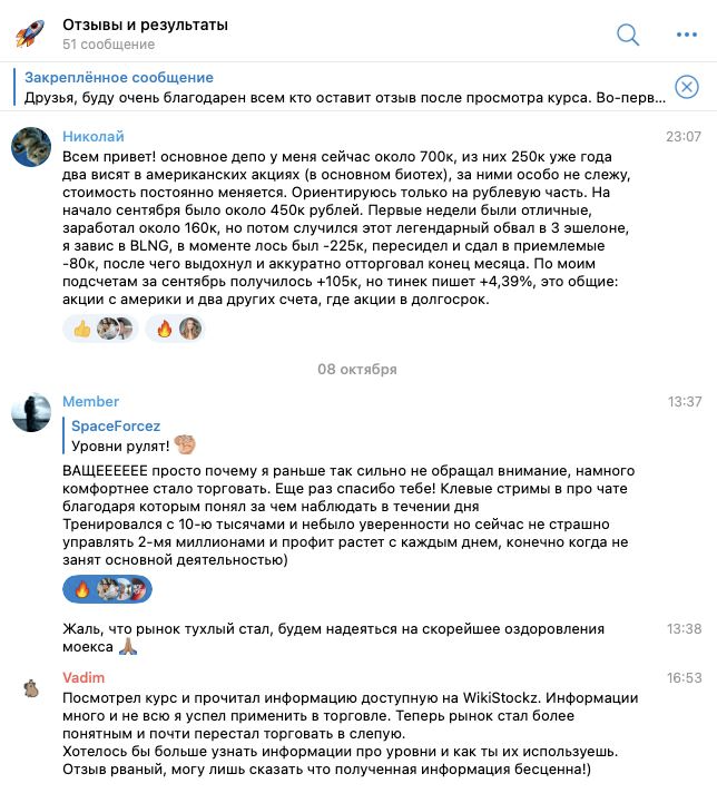 В подконтрольных автору проекта аккаунтах отзывы о нем и его услугах, конечно же, являются положительными. Из этих ревью следует, что прошедшие обучение люди остались крайне довольны как предоставленными им материалами, так и результатами торговли по ним.
