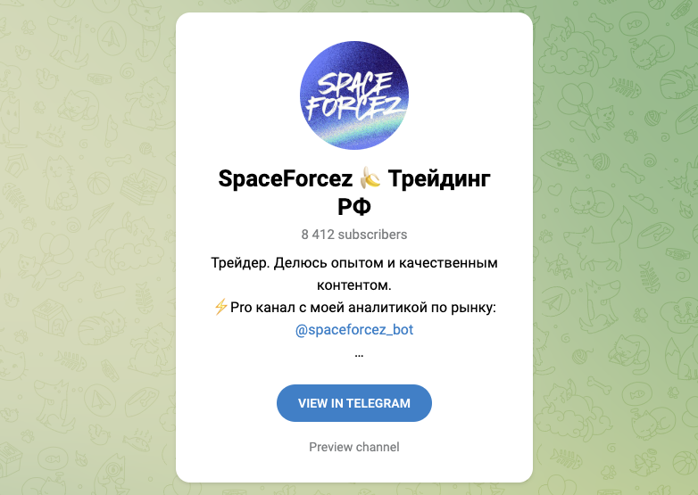 Основной и единственный информационный источник проекта – это телеграмм-канал «SpaceForcez Трейдинг РФ», SpaceForcezz. На него, на 21 августа 2024-го года, подписано около 8,4 тысяч пользователей.