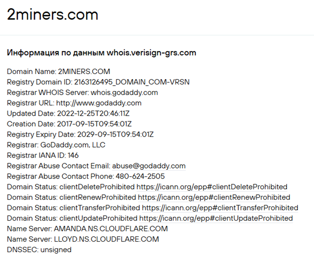 Фактически гарантий безопасности 2miners com нет. Компания не предоставляет о себе никаких официальных данных – ни документов о регистрации, ни адресов офисов и дата центров.