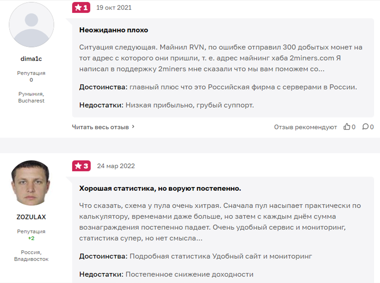 Отзывы на 2miners com на независимых форумах не самые лучшие.
