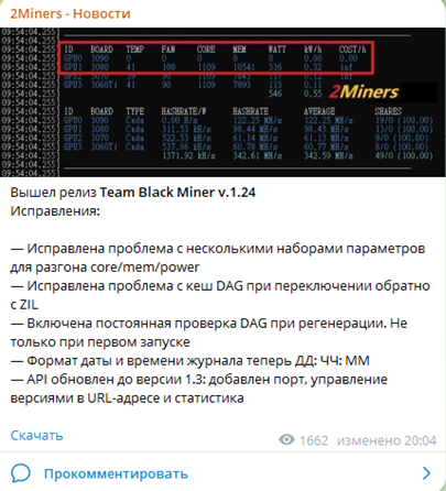 В чате публикуются новости проекта – это изменения в майнинге тех или иных монет, информация о смене комиссий и тарифных планов и прочие организационные моменты. Пример новостного поста можете видеть на скриншоте.