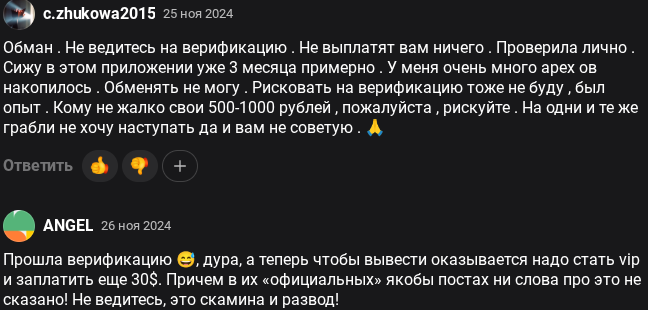 Положительной обратной связи, как оказалось, в сети нет. Пользователи в отзывах о Apex App пишут про скам с подключением кошелька. После якобы верификации разработчики воруют все накопления на криптокошельке.