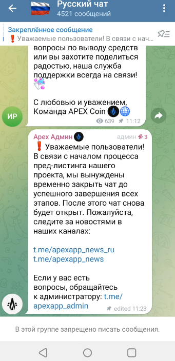 К последнему пункту хотим добавить, что у цифрового проекта было информационное сообщество. В отзыве о скаме Apex отметим, количество подписчиков превышало отметку в 18 000 человек, а это указывало на популярность проекта. Однако, подметим, что нельзя исключать искусственную накрутку аудитории.