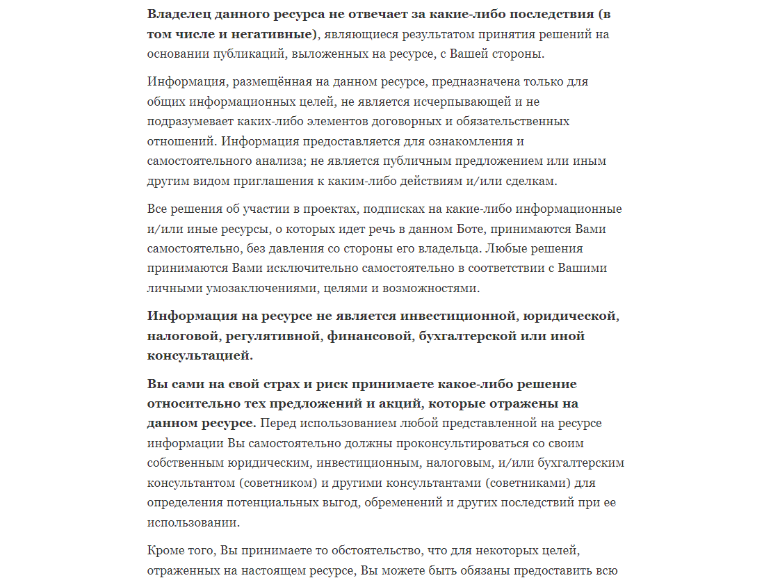 Рассматриваемый проект работает с 2022 года. Информации про создателей не предоставлено. Многие пользователи в отзывах интересуются, бот в Телеграмме Appcent Robot развод или нет. Первым делом, на что следует обратить внимание, это наличие документов. В данном случае у проекта отсутствует лицензии и подтверждение от ЦБ РФ. Кроме того, руководители оставляют ссылку на пользовательское соглашение. В нем обозначено, что основатели не несут ответственности за любые негативные последствия в работе. Все риски берет на себя только участник.