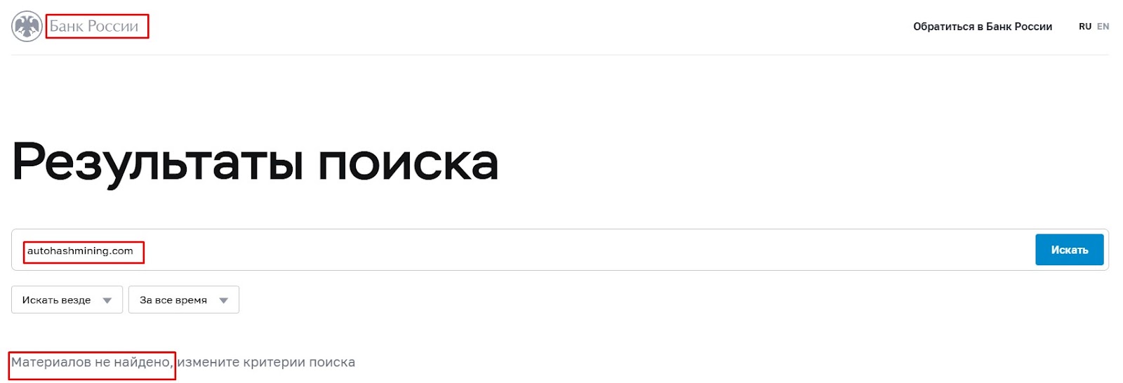Платформа autohashmining не внесена в реестр Национального Банка России. Проект без финансовой регуляции содержит высокий риск убытков без возможности возврата средств.