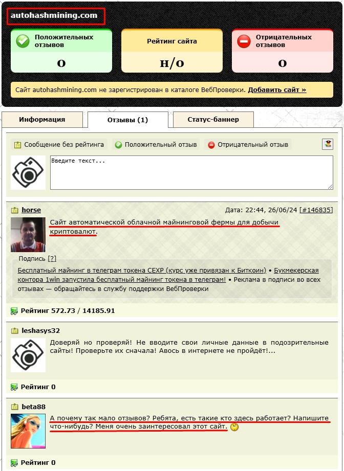 В криптовалютных сообществах пользователи делятся ссылками для поиска рефералов. В обсуждениях и чатах юзеры проявляют интерес к autohashmining и регистрируются на платформе. Но часть аудитории скептична к концепции облачного майнинга.