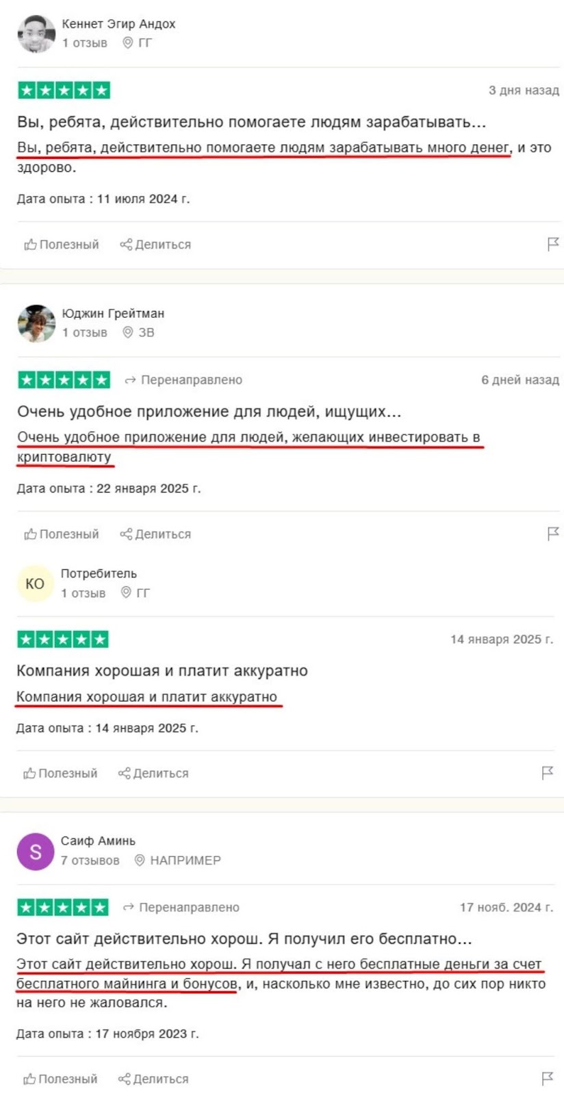 В положительных отзывах пользователи пишут о надежности платформы и большой доходности. Но майнеры не сообщают о размере прибыли.