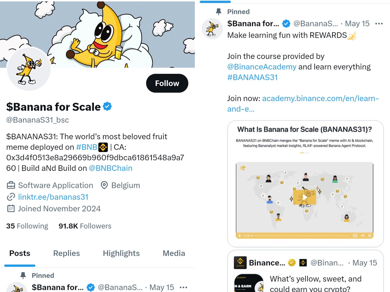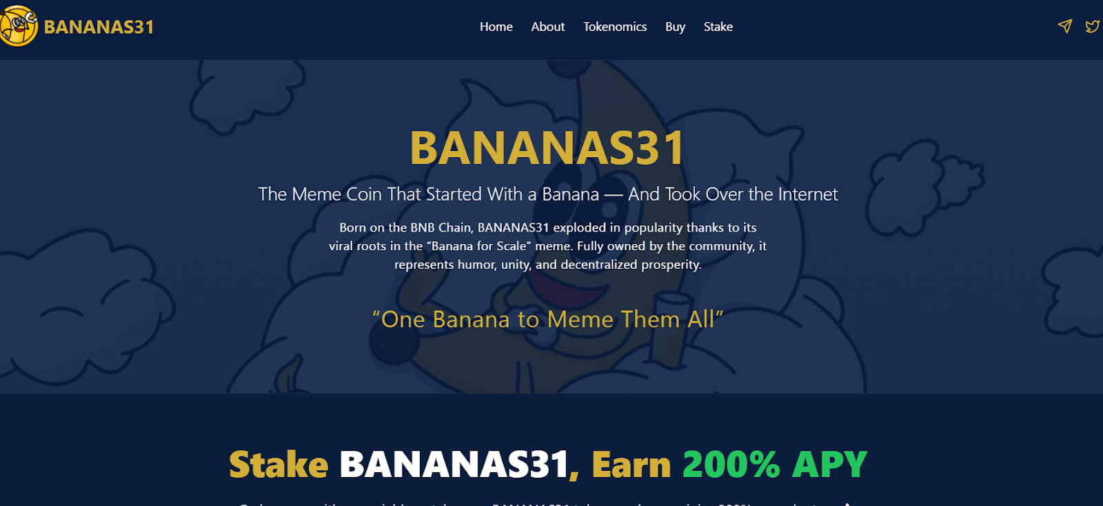 Проект был создан в ноябре 2024 года. Коин посвящен известному мему Banana for Sale, и основатели рассказывают, что вдохновением также служил стикер банана, который разместил Илон Маск на SpaceX. Сам предприниматель к криптовалюте Bananas 31 не имеет никакого отношения. Имена разработчиков на сегодняшний день скрываются. У компании есть несколько сайтов: bananabsc com и bananas31 org.