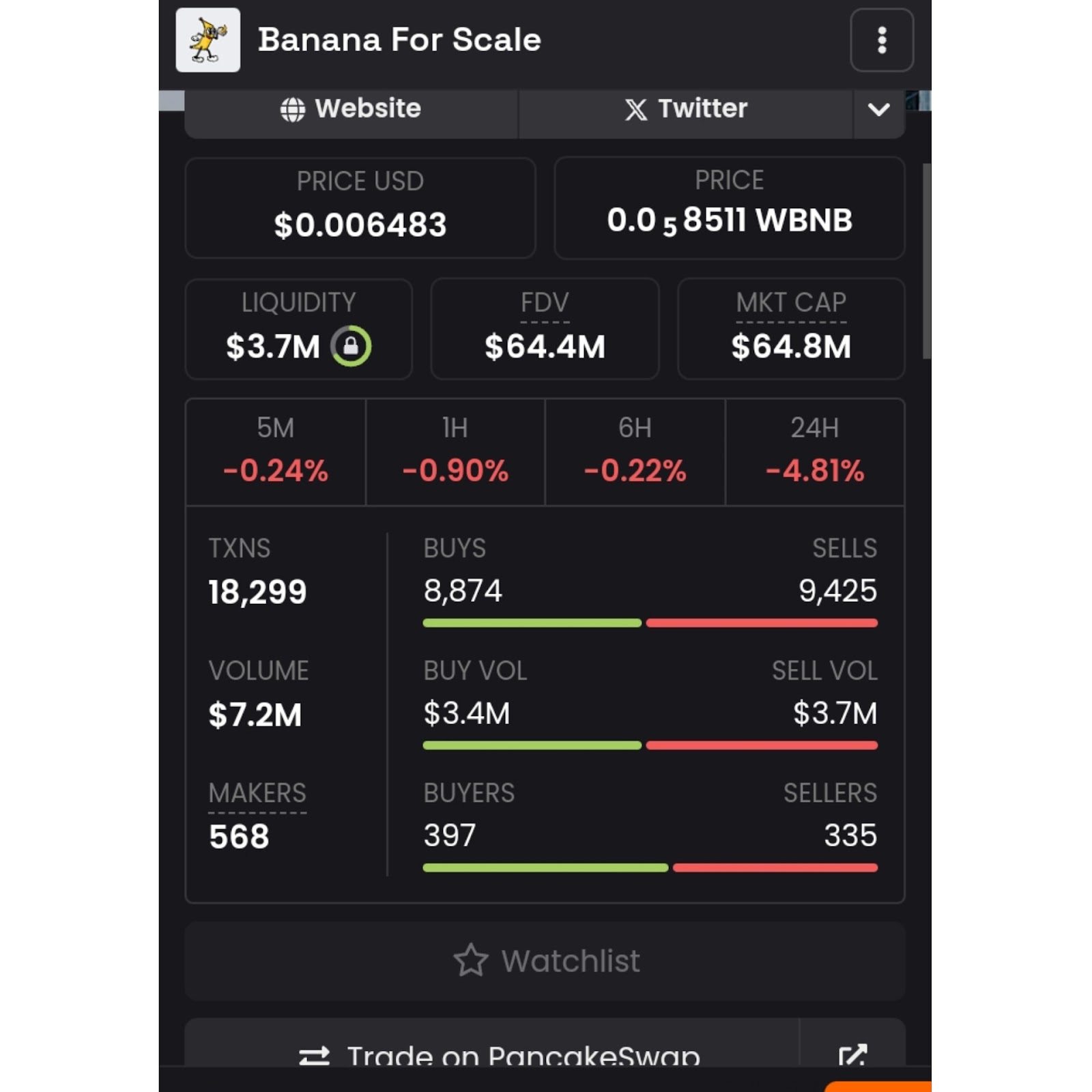 20 марта 2025 года коин прошел листинг на Битгет. Сейчас токен Banana For Scale торгуется на: Бинанс, PancakeSwap и других платформах.