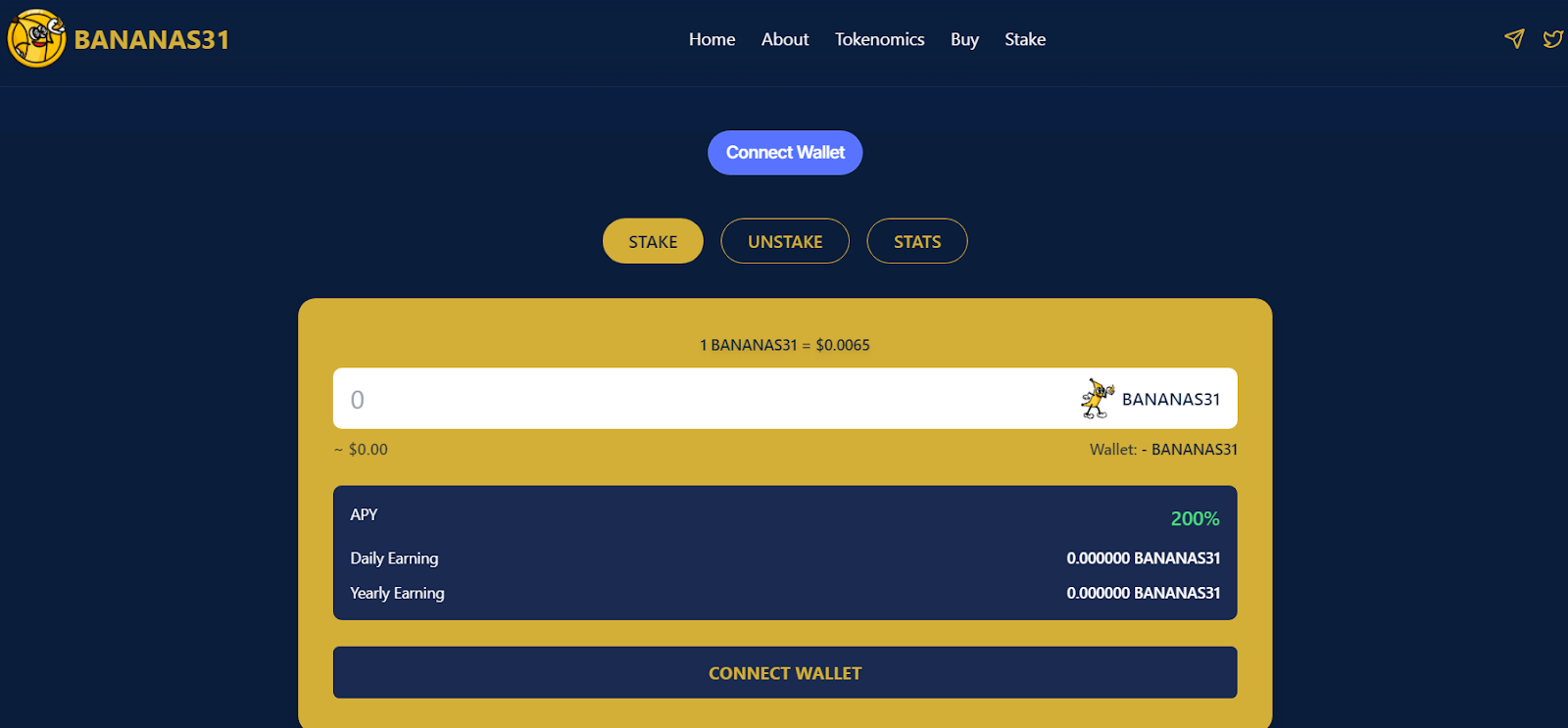 Пользователям предложен стейкинг коинов с APY 200%. Для участия нужно перейти на официальный ресурс проекта, а затем подключить кошелек (MetaMask, TrustWallet) и выбрать сумму для стейкинга.