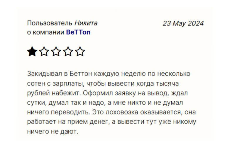 - негативные отзывы о BetTon – вывести деньги отсюда нельзя.