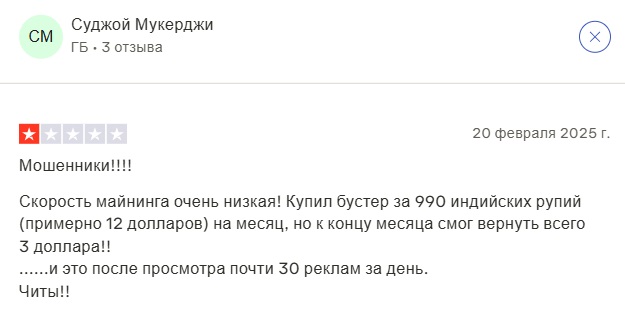 При более детальном изучении стало известно, что почти все отзывы о Bit tycoon содержат в себе недовольство сразу нескольким моментами. В первую очередь люди пишут о том, что скорость майнинга, несмотря на оптимистичные заявления авторов, является крайне низкой. Один из клиентов смог заработать за месяц всего 3 доллара, вложив для ускорения процесса гораздо большую сумму.