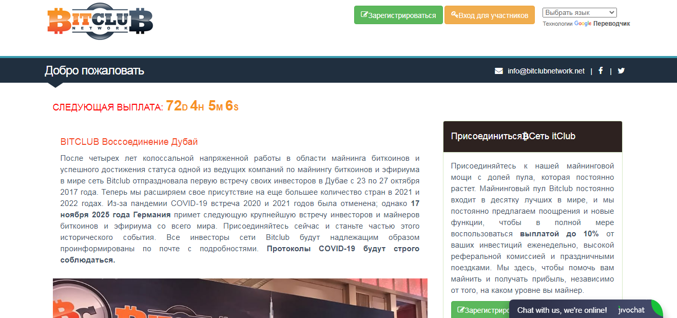 Платформа BitClub Network якобы была запущена в 2014 году. Она называет себя крупным пулом для майнинга, который контролирует порядка 4% мировой добычи биткоина. На сайте bitclubnetwork net сказано, что оборудование для майнинга компания размещает в Исландии. Инвесторы могут зарабатывать вместе с BitClub Network, инвестировав в майнинг.