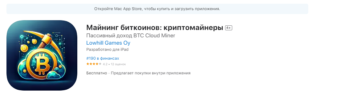 В App Store у софта также неплохая оценка — 4,2 звезды, но всего от 12 человек. Программа совместима с устройствами на базе iOS 12.0 или более поздней версии. Это немного ограничивает использование майнера для владельцев Айфонов старых версий.