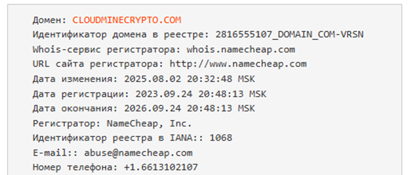 Сайт Bitcoin Mining Crypto Miner зарегистрирован 24 сентября 2023 года. Поддерживает исключительно английский язык и плохо оптимизирован для использования через стационарные компьютеры.