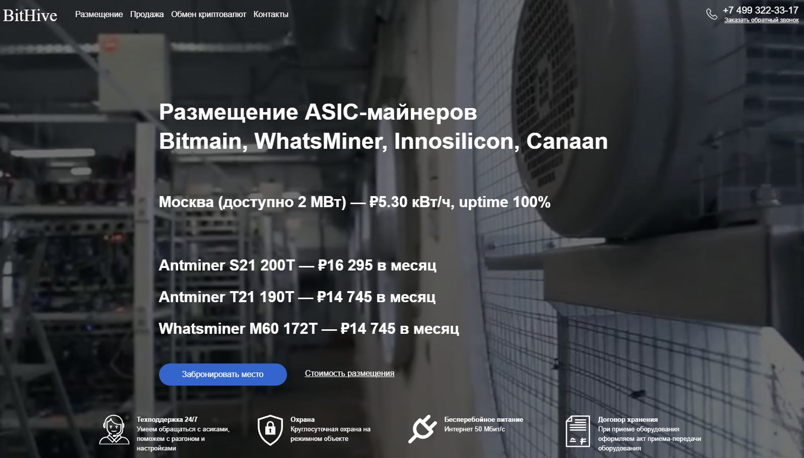 Официальный сайт майнинг-отеля размещен по ссылке Bithive Ru. Разработчики ориентируются на российскую аудиторию, поэтому вся информация представлена на русском языке.