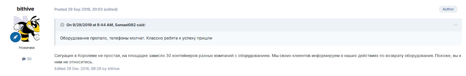 На форуме Bits Media есть отдельная тема, принадлежащая проекту Бит Хайв. Отзывов в ней не так много, зато на любой негатив команда отвечает лично, отчитывается о различных ситуациях и держит клиентов в курсе.