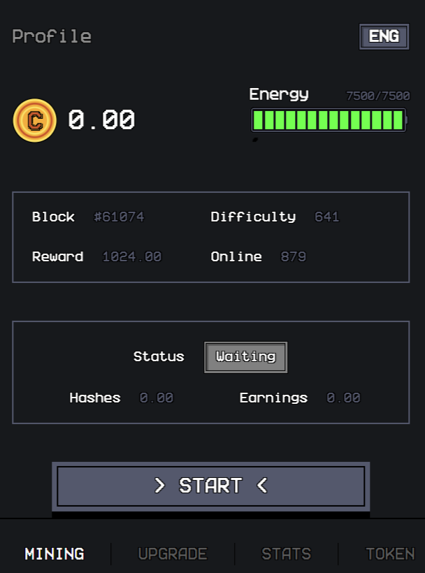 Ниже можно увидеть количество добытых монет, а также доступную энергию. По умолчанию клиентам доступно 5500 единиц Energy, которые в перспективе можно увеличить.