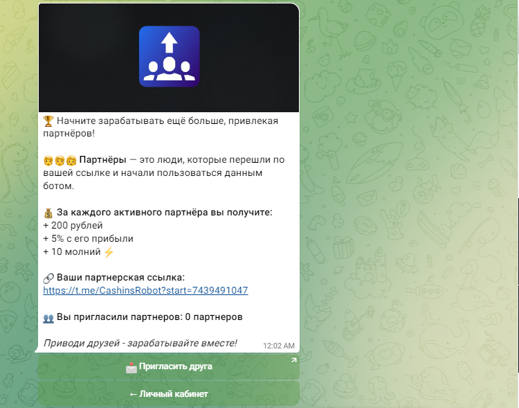 Cashinsrobot — это telegram бот для майнинга криптовалюты, который позволяет после запуска иметь заработок в размере 200 рублей за 10 минут, однако данный способ широко используется в мошеннических кругах, развод или нет? Узнаете в данном обзоре.