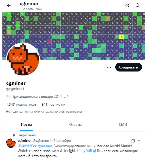 Программист владеет аккаунтом в сети «Икс» под названием Cgminer1.