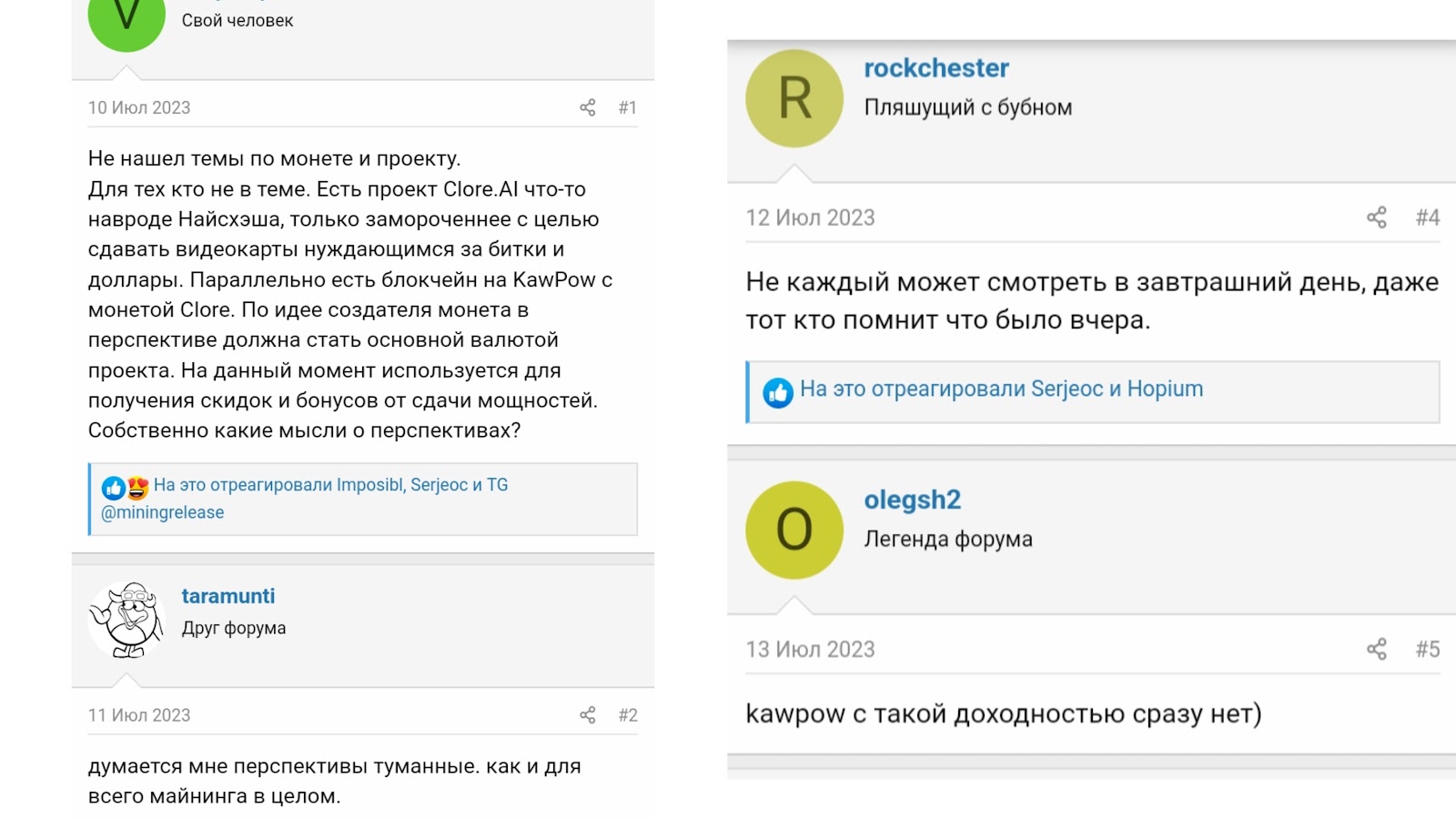 На тематических ресурсах мы нашли отзывы о Clore Ai Coin. Некоторые пользователи пишут о том, что им удалось с проектом получить заработок.