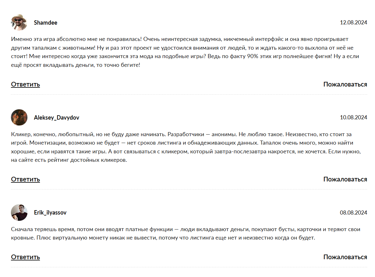 В отзывах о Кэш Коин пользователи заявляют о невозможности получения заработка. Клиенты отмечают интересную задумку, но отсутствие реальной прибыли. В качестве минусов выделяется отсутствие данных о создателях и листинге. На этом фоне пользователи не торопятся называть эту кликалку перспективной.