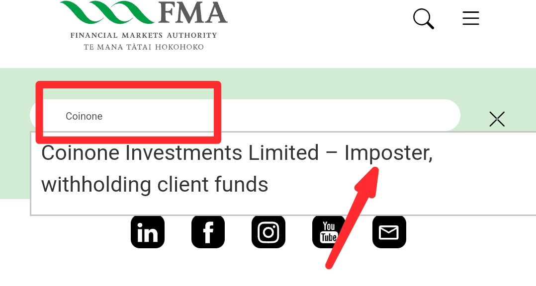 - Заявлено, что CoinOne зарегистрирована в Новой Зеландии и регулируется FSA, но регулятор отрицает свою связь с этой фирмой. Если компания обманывает в таком важном вопросе, то вряд ли ей можно доверять в чем-то еще.