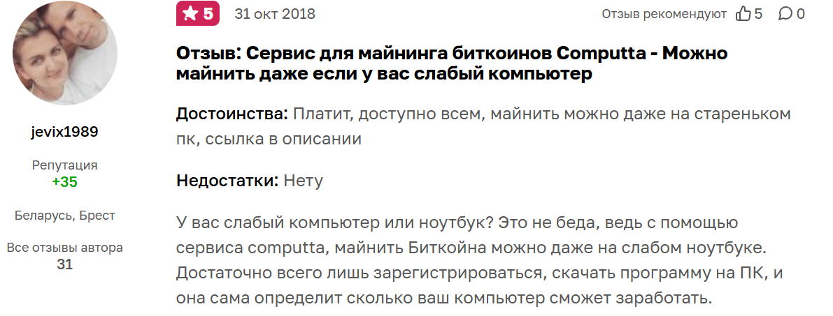 Отзывы о майнинге на платформе computta com