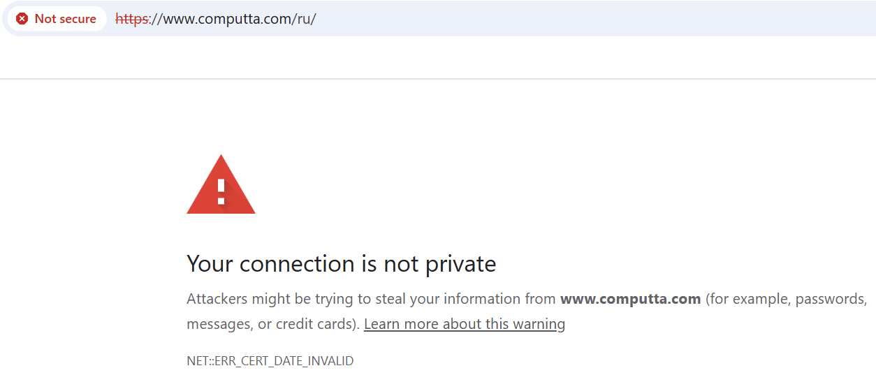 Мы проанализировали майнинговую платформу “Computta Майнинг” и обратили внимание, что у веб-сайта нет соответствующих сертификатов безопасности.