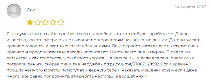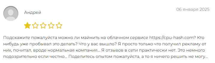 На различных тематических платформах можно найти негативные отзывы о майнинге с CPU HASH com. Среди основных претензий: