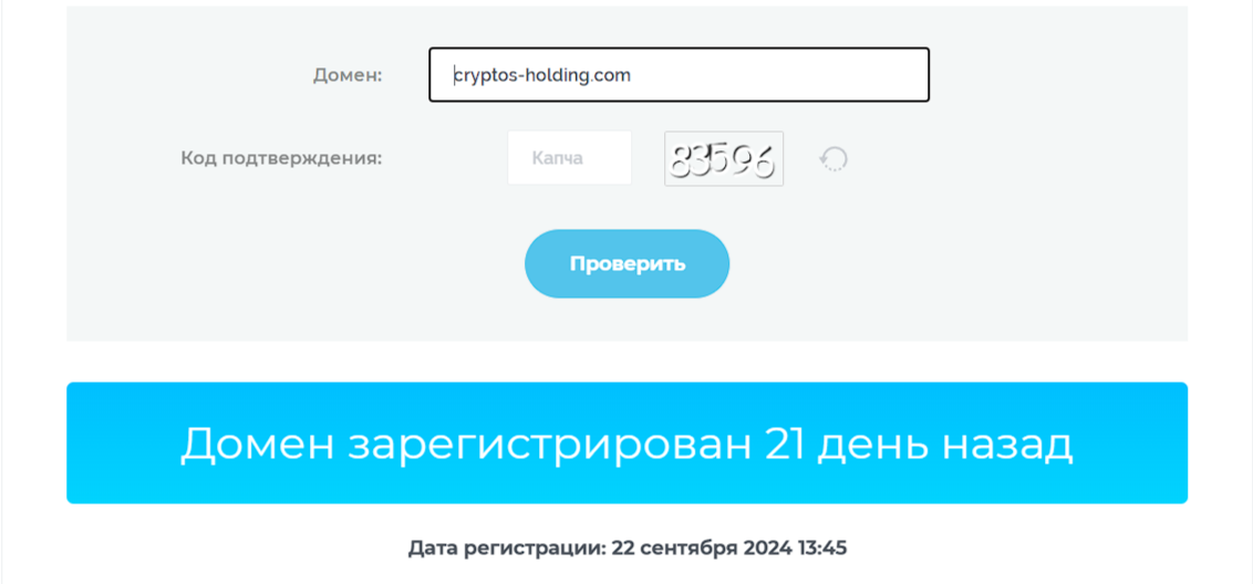 Домен cryptos-holding.com зарегистрирован 22.09.24 и работает меньше месяца, поэтому мы не можем судить о настоящем опыте.