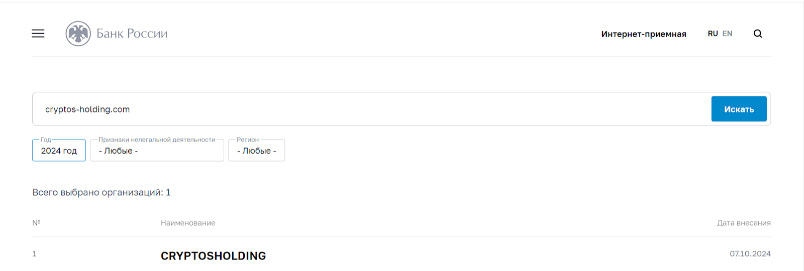 По официальным данным, компания внесена в черный список банка России. Из-за чего было принято такое решение — неизвестно, однако это сразу вызывает ряд вопросов о легитимности проекта.Критика в отзывах о cryptos-holding.com