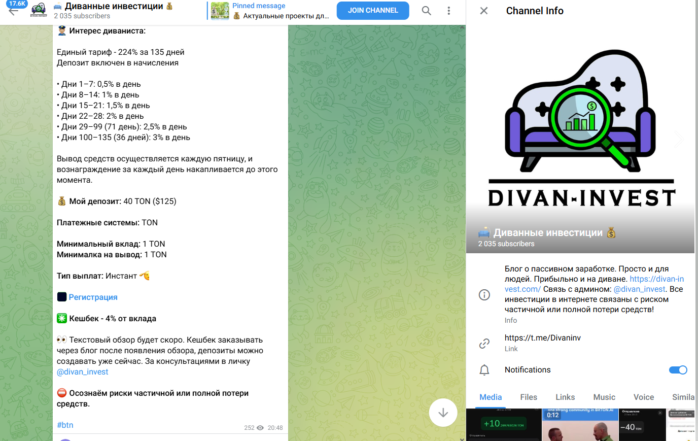 Обзор канала Диван Инвест: отзывы пользователей и проверка проекта Divan Invest на честность