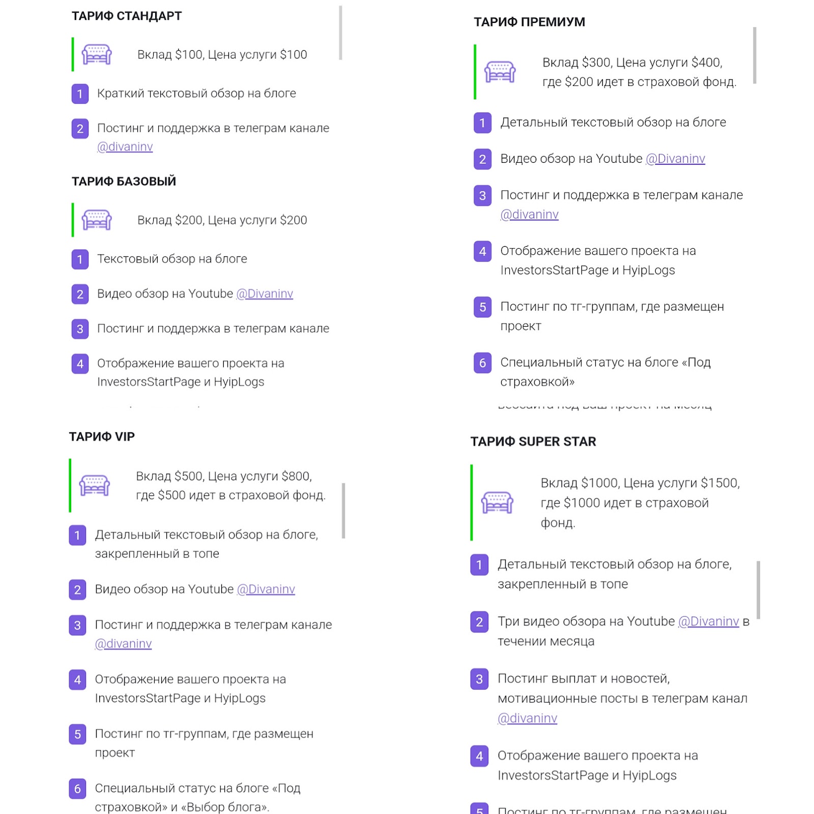 Следовательно, за счет рефералов получают прибыль. Помимо данного тг-канала, у создателей есть паблик DivaninvestNEW и Чат блога Divan invest com (divaninv ch).