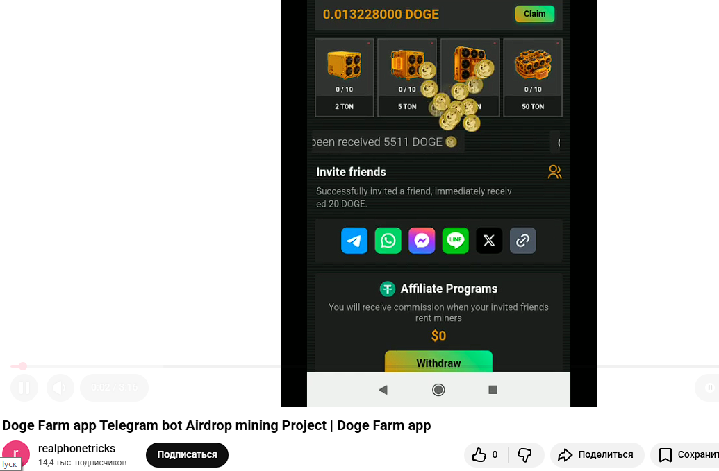 Мы не нашли ни одного упоминания этого паблика в интернете. Все, что можно найти – единичные отзывы о приложении Doge Farm app, например, в виде видео на YouTube:
