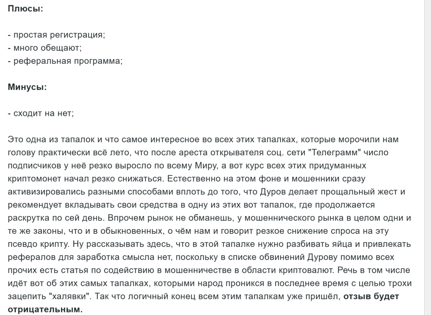 В некоторых отзывах игроки отмечают простую регистрацию, большой потенциал и реферальную программу. Здесь же указывается невозможность получения большого заработка.
