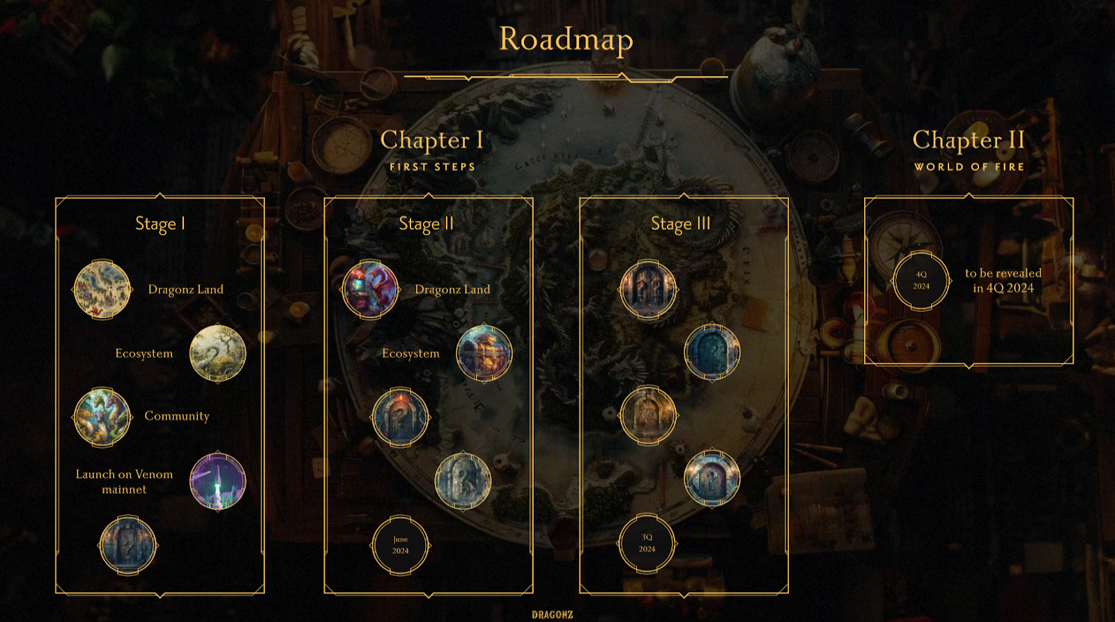 Дорожная карта DragonzLand имеет формальный вид и условно разбита на три стадии:
