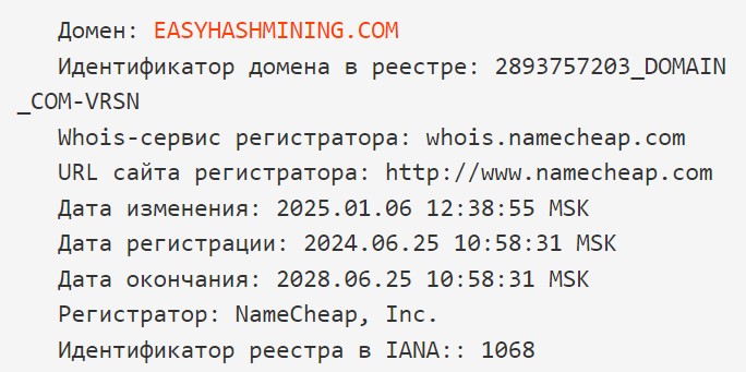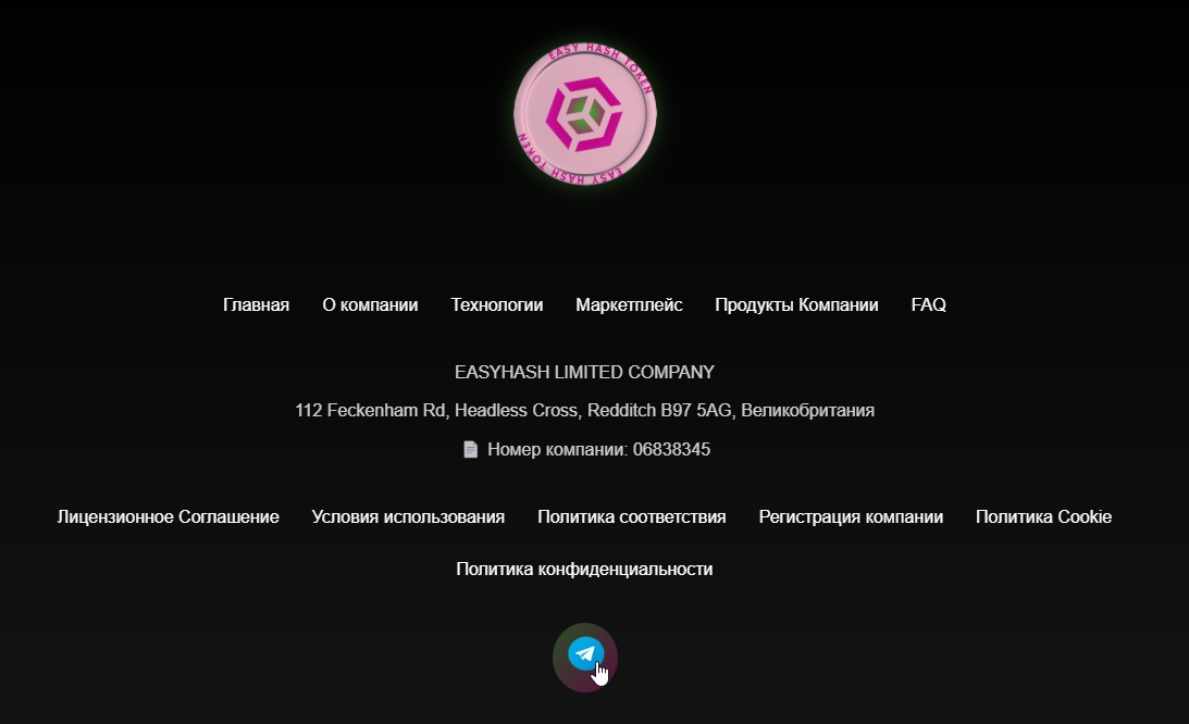 Компания числится в базе под номером 06838345. Офисы располагаются в Великобритании и на Виргинских Островах. В описании на сайте указано, что Easyhash Mining появилась в 2023 году, однако регистрация домена произошла один с лишним годом позже.