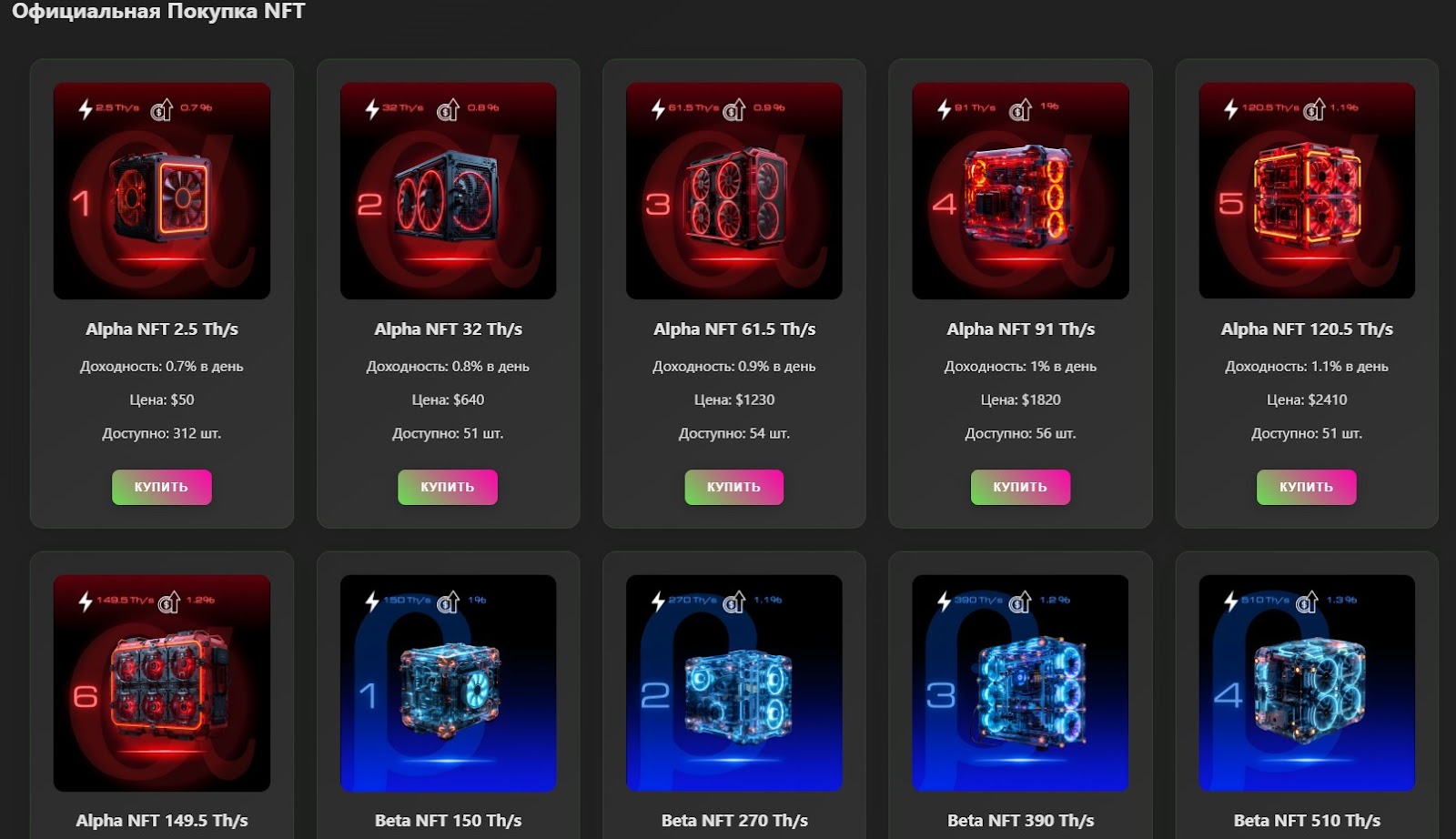 Минимальный порог входа для майнинга на Easy Hash Miningmining com составляет $10. Прибыльность зависит от типа НФТ-майнера и варьируется в пределах от 0,7% до 2,3% в день. Можно увеличить заработок дохода путем стейкинга, реинвестирования прибыли или покупки более мощных майнеров. Есть возможность продавать свои NFT-майнеры на маркетплейсе платформы.