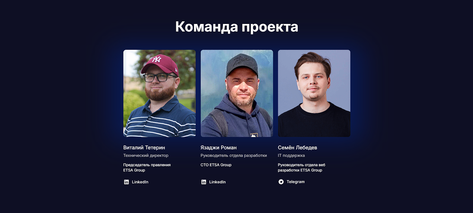 На официальном сайте etsacoin com заявлено, что владельцами etsa group являются Виталий Тетерин, Язаджи Роман и Семен Лебедев. Однако в сети можно найти информацию о том, что двое последних являются ИП, работают сами на себя и лишь выполняют заказанную задачу. Никакой прямой связи с ETSA они не имеют!