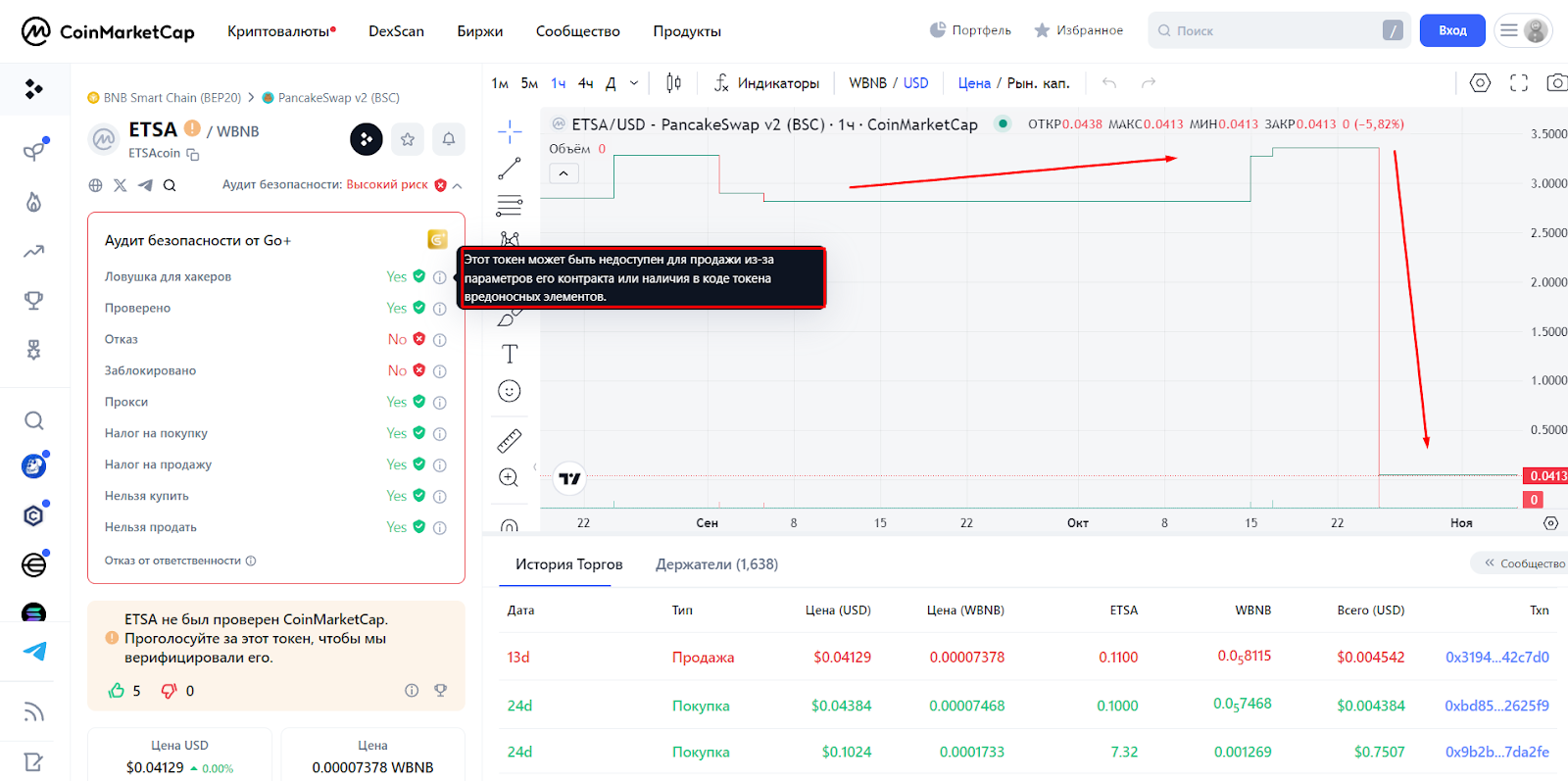 Причиной этому стало изменение условий купли/продажи, а также комиссия на покупку, что создает высокие риски мошеннической схемы honeypot. Ведь никакой информации касательно этих действий от команды разработчиков — нет.