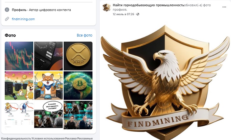 - Фейсбук — та же картина, в сообществе 104 тыс. участников, но как майнинг проект активизировался только 12 июня 2025. До этого аккаунт он принадлежал благотворительному фонду и с 2022 года был нерабочим.